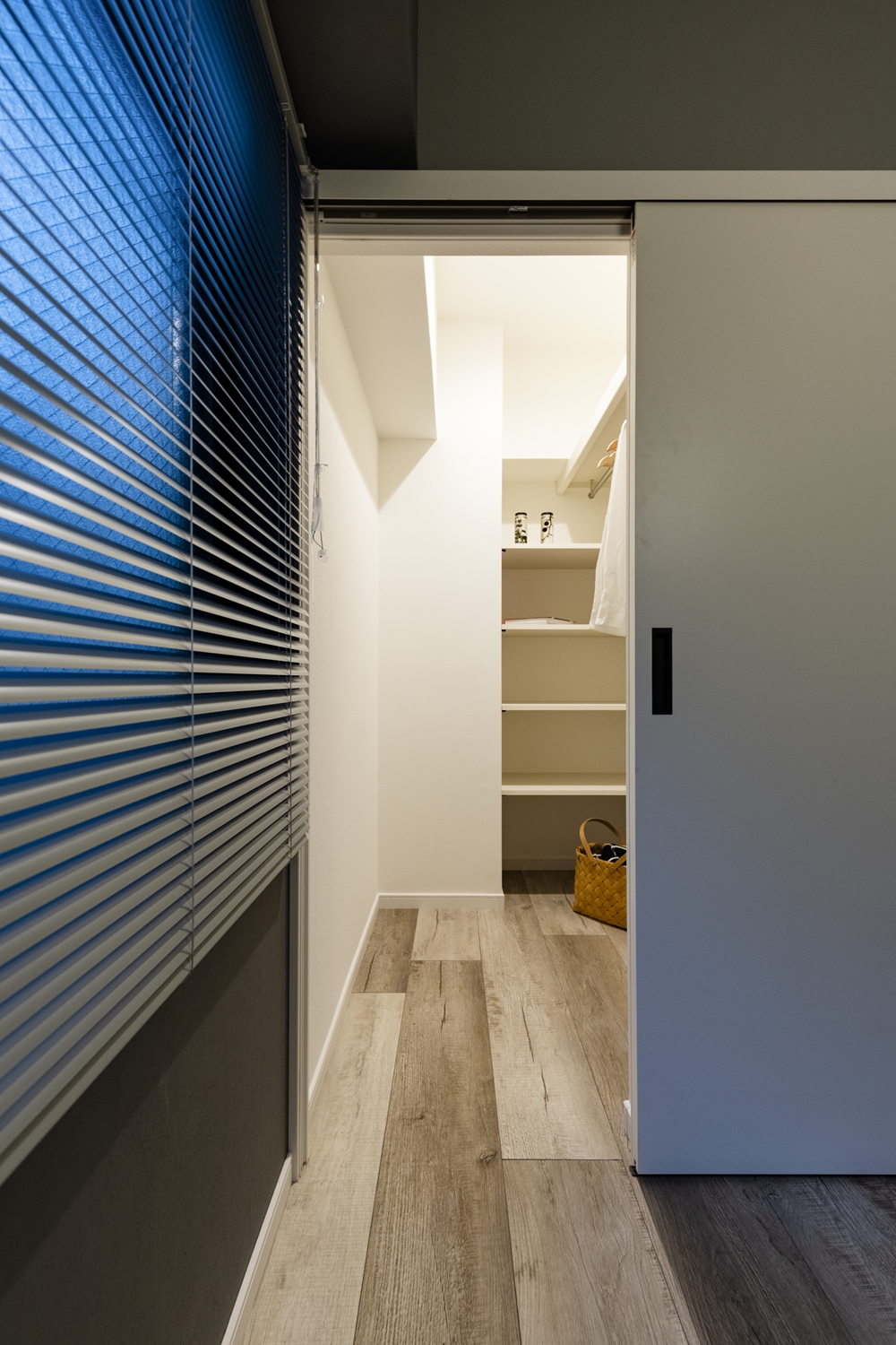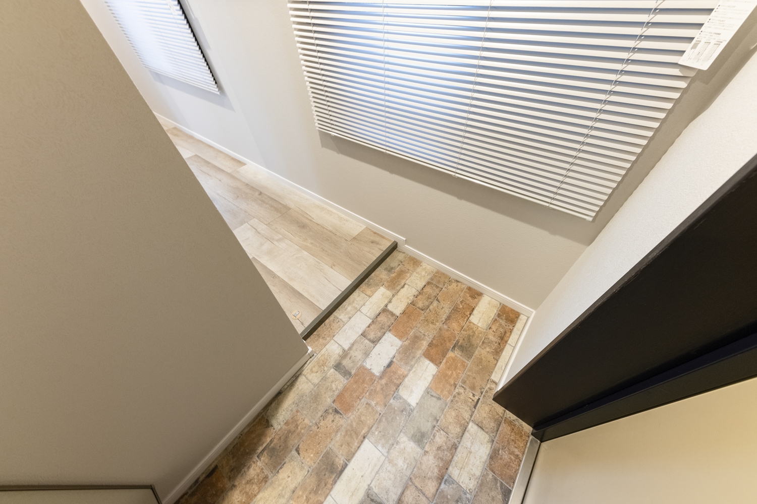 廊下/グレー系をミックスさせた幅広のフローリングを既存の床に重ね張りしました。異なる不揃いなカラーのコントラストが、カッコイイ表情を創り出してくれます。
