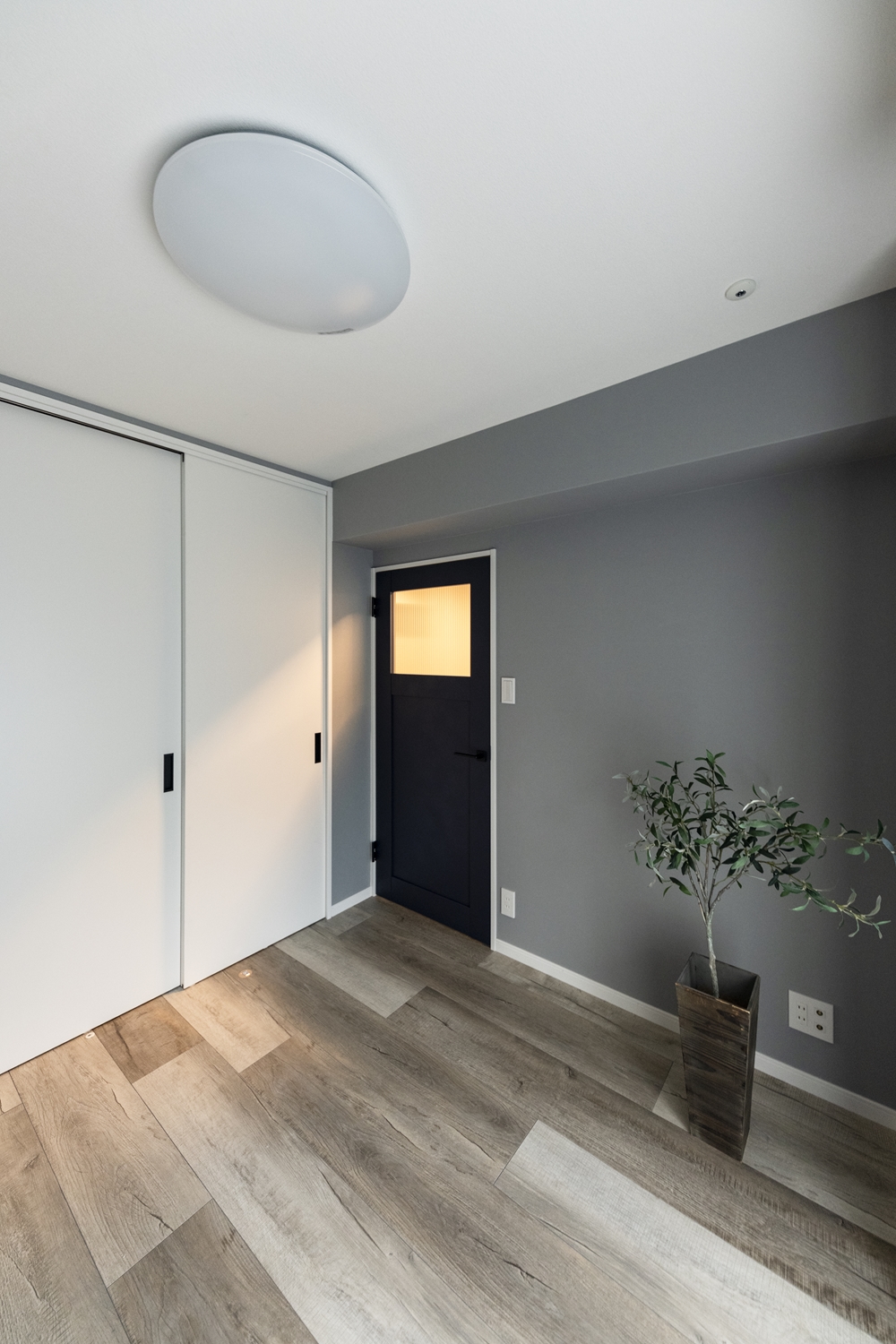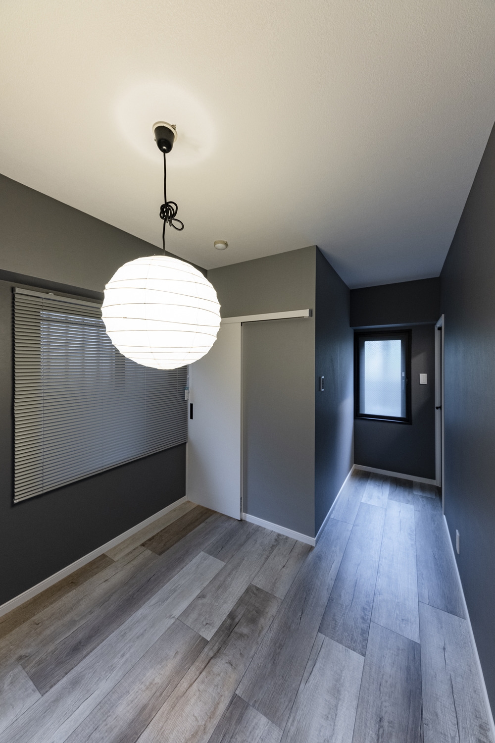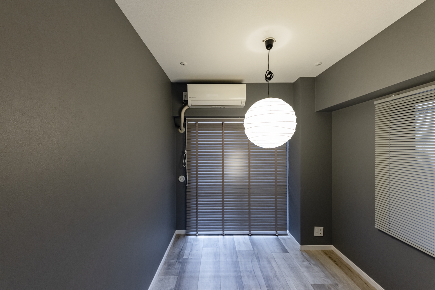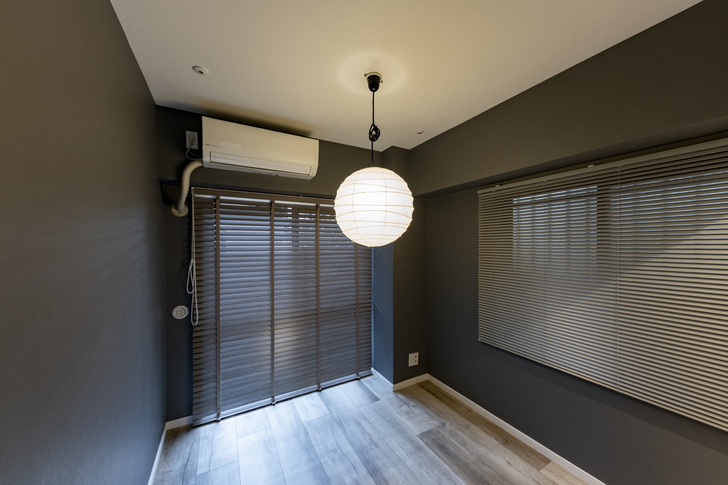 洋室/ダークトーンのグレーのクロスを施し、生活感を感じさせない都会的なモノトーンスタイルに大変身!
