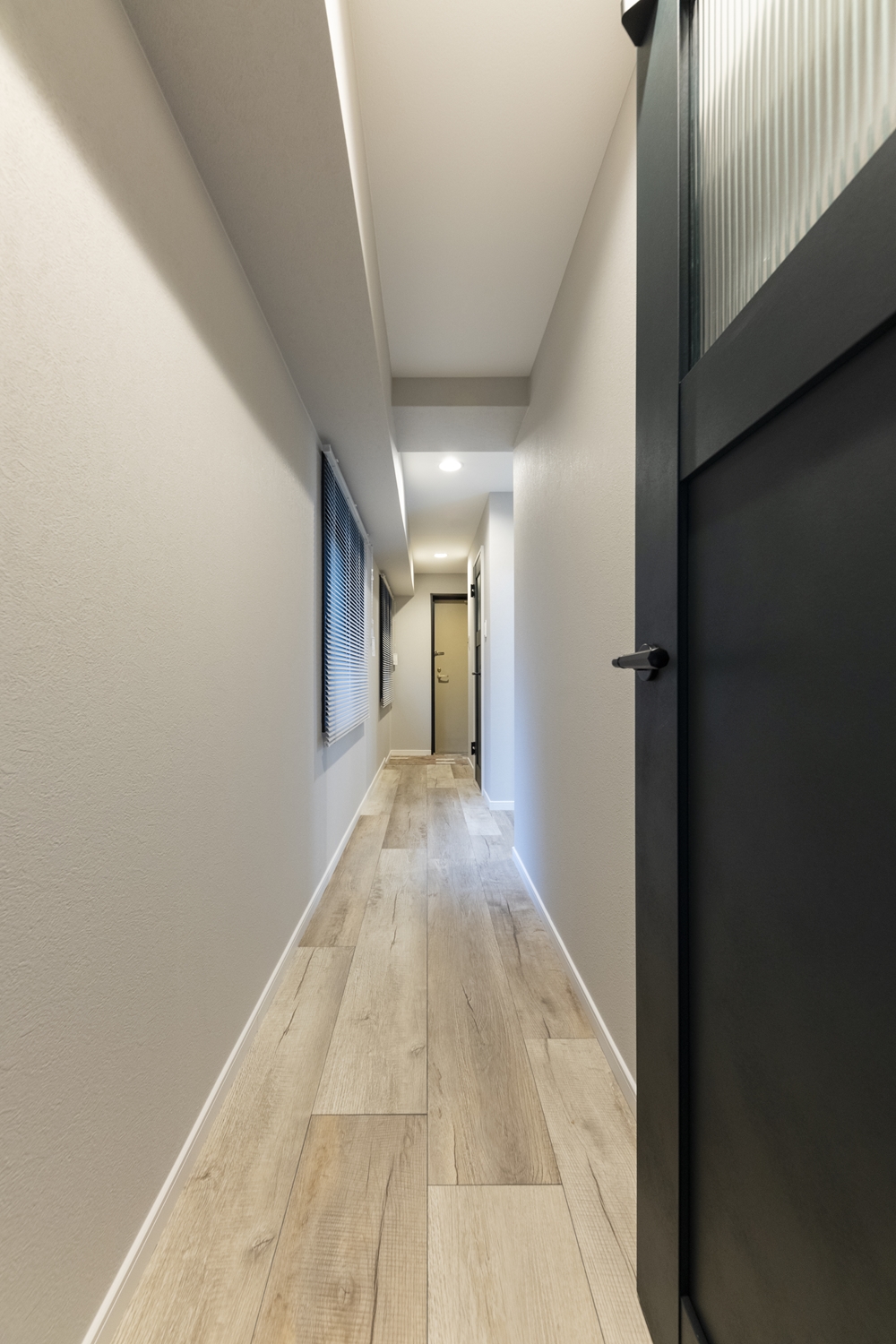 廊下/グレーをベースにした、やわらかさとシックさを合わせ持つ、ハイセンスな空間。