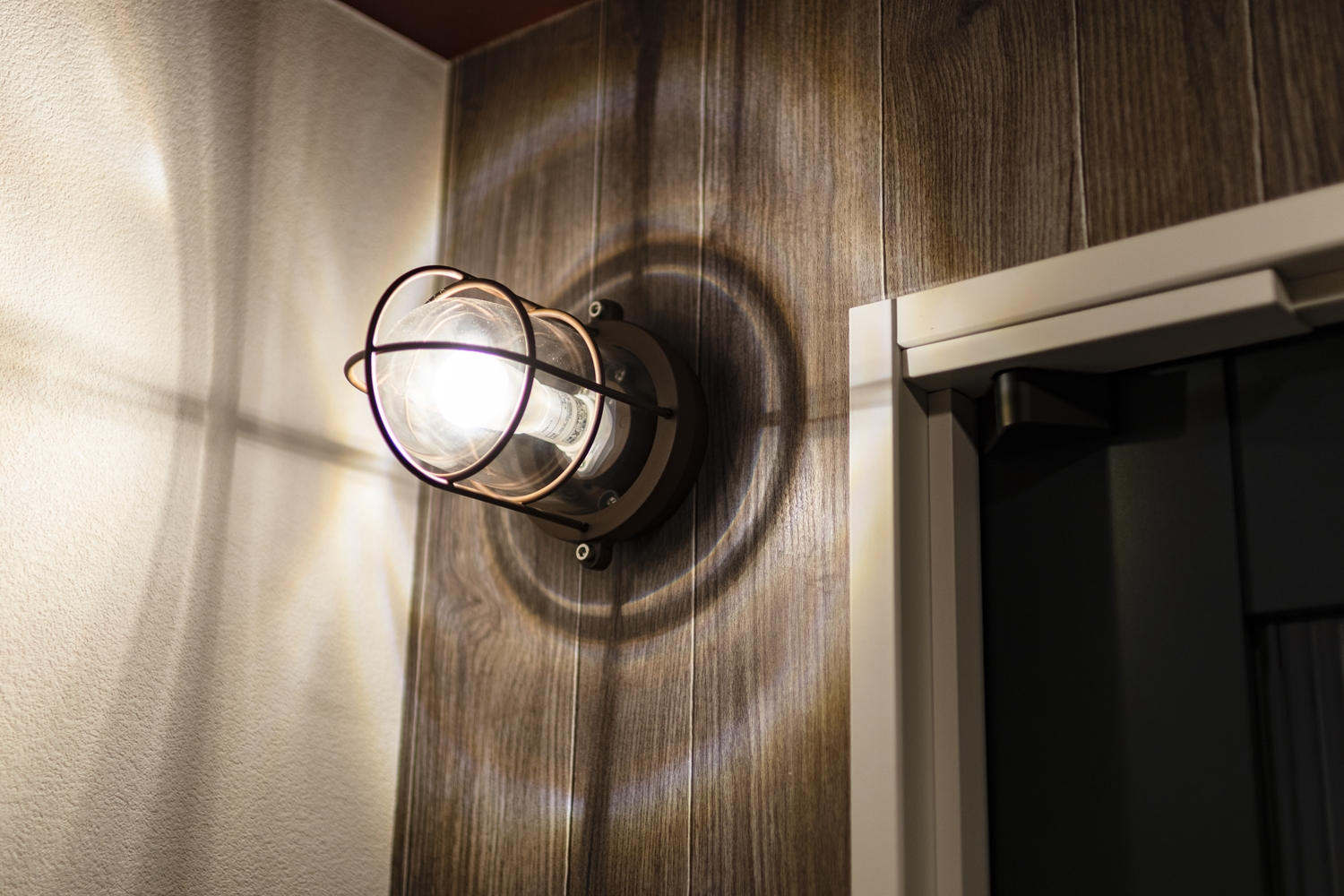 トイレ/インダストリアル感がとってもおしゃれなブラケット照明を施し、個性的で遊び心のある空間に♪