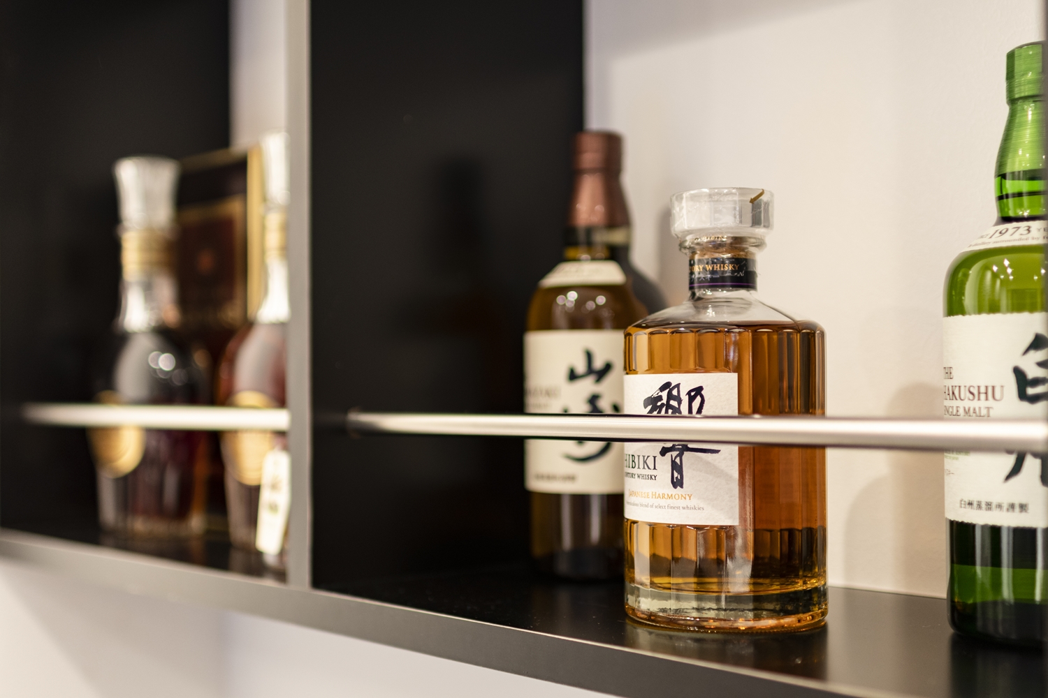 ご主人お気に入りのお酒を飾って楽しむ「ボトルラック」を設置しました。