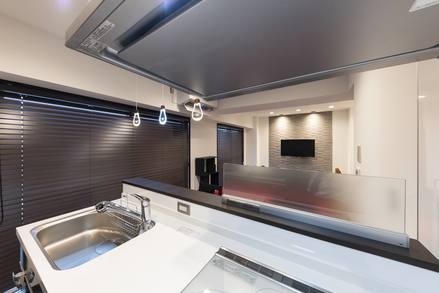 キッチン前のカウンターは、座れるよう奥行きを持たせ、バーカウンターの様な、オシャレでカッコ良い空間に♪