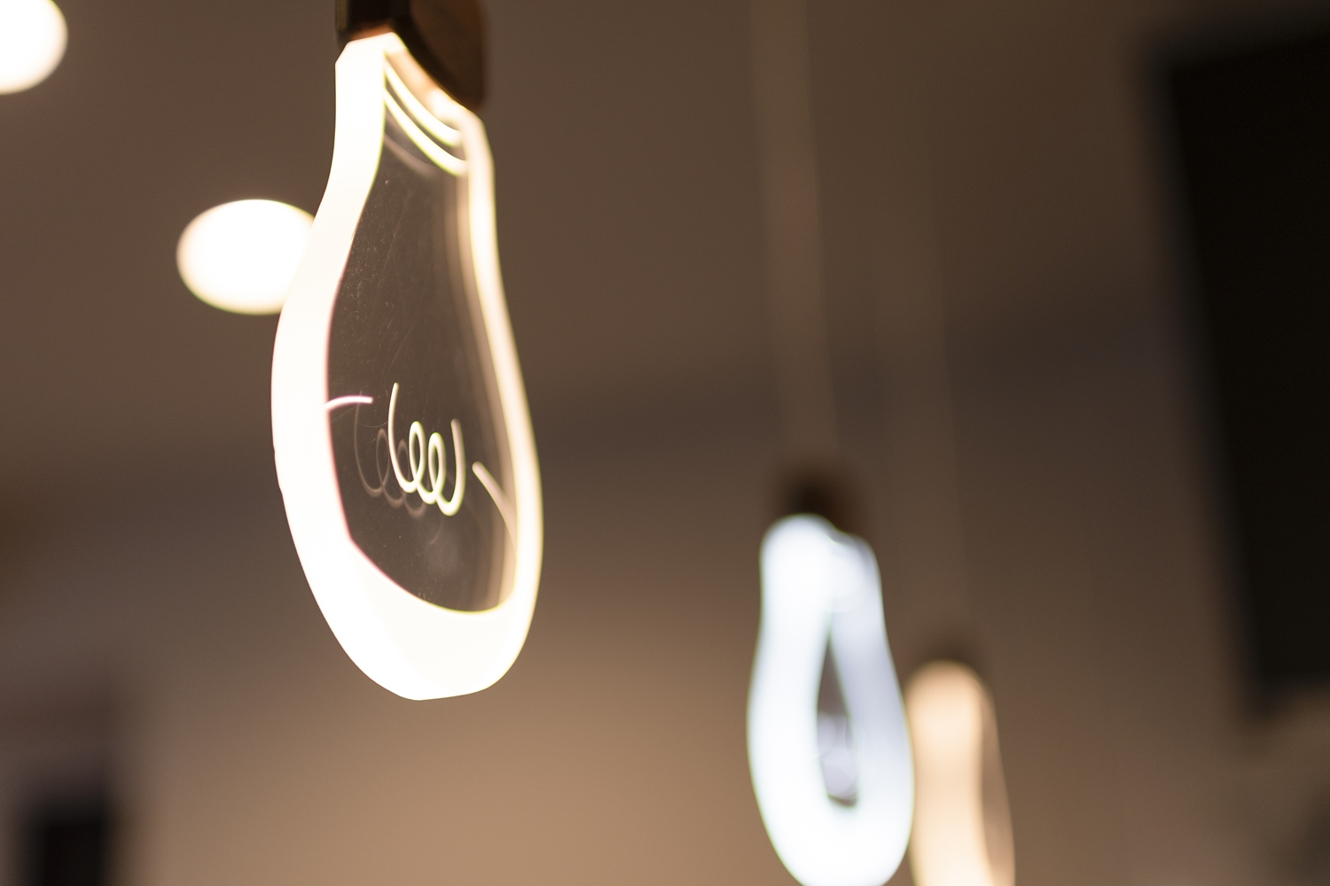 遊び心のあるオシャレな照明を設置。周りの明かりを消すとこんな感じに♪
