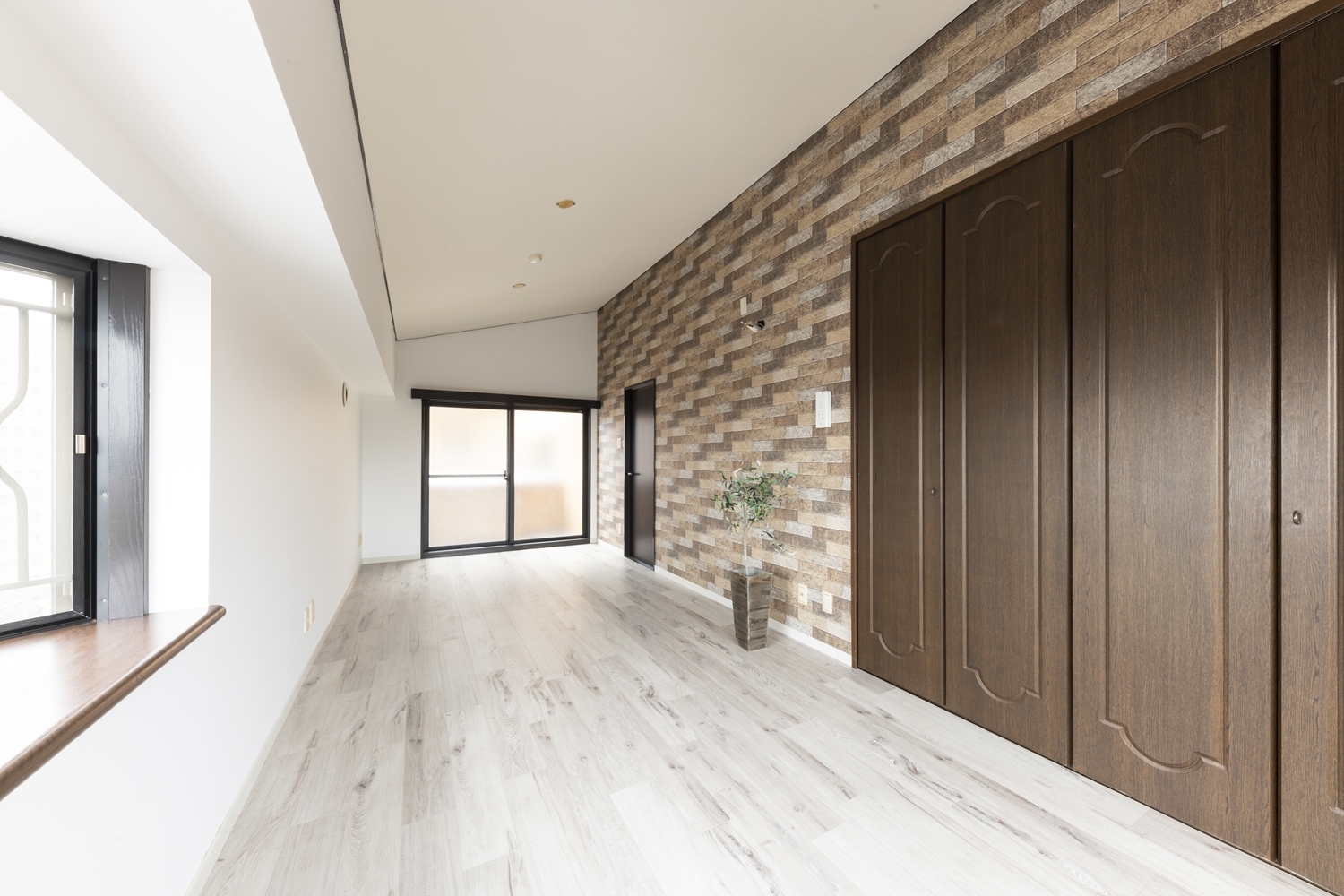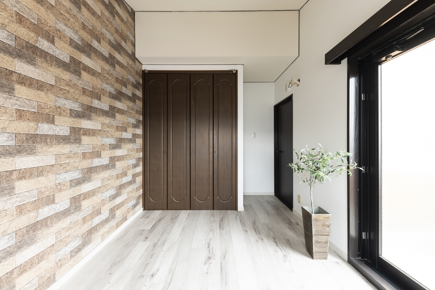 築28年のマンション一室を全面リフォーム!各お部屋に表情豊かな木目柄やレンガ模様、ダークカラーなどなど様々なデザインを取り入れて、人気のモダンなスタイルのお部屋に大変身させました!