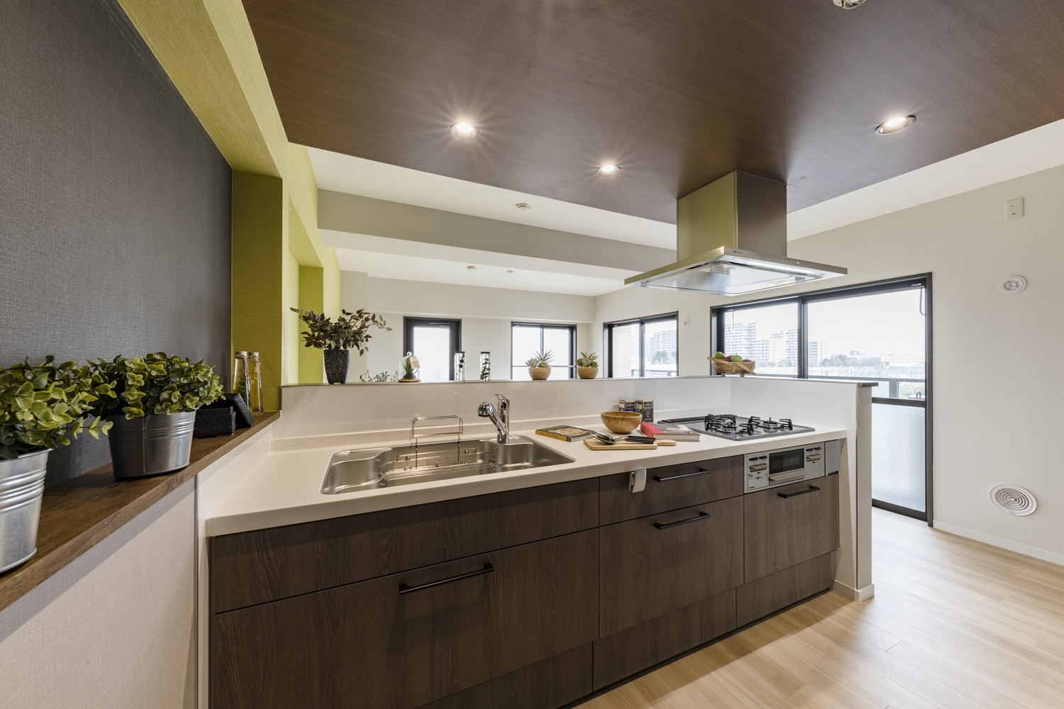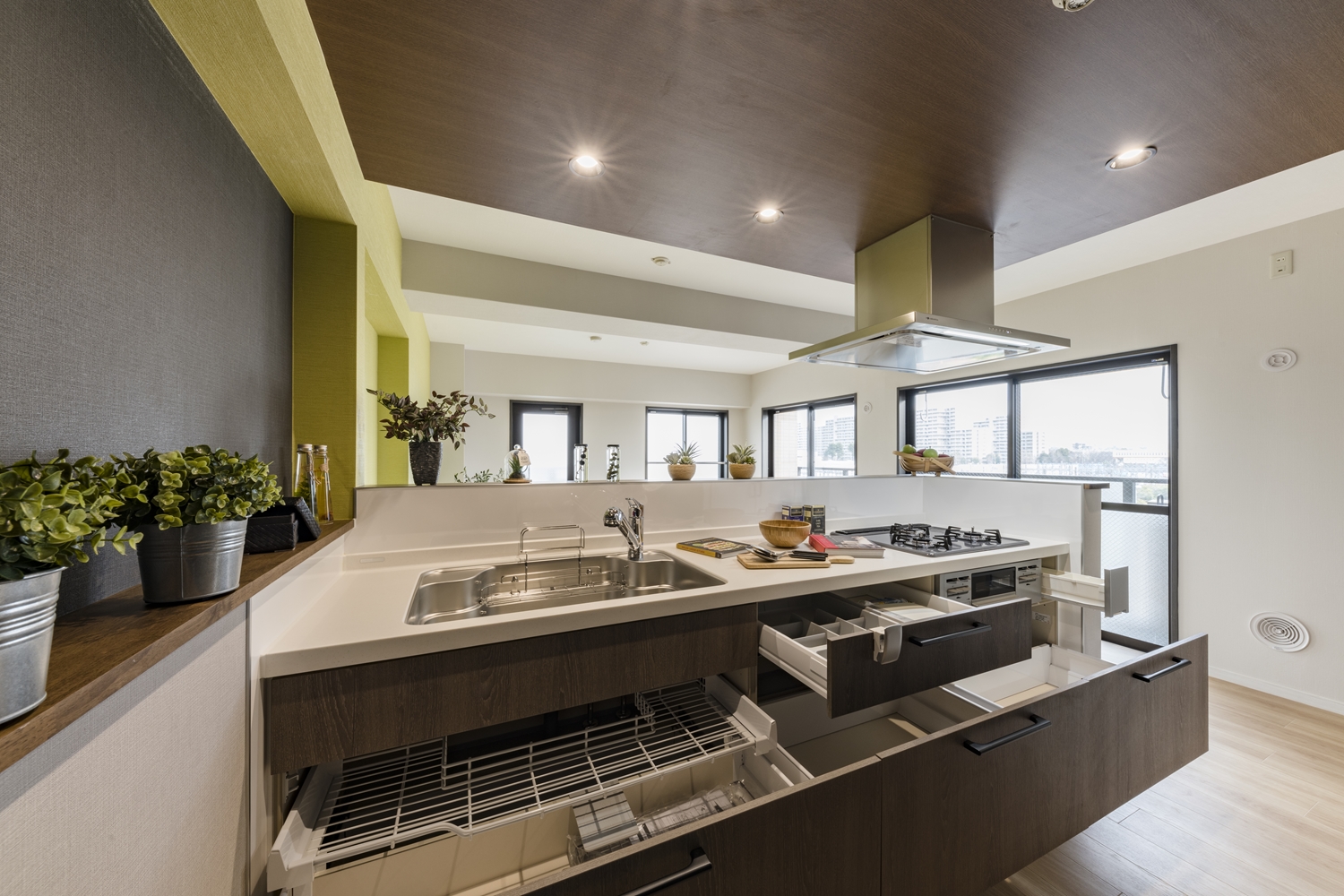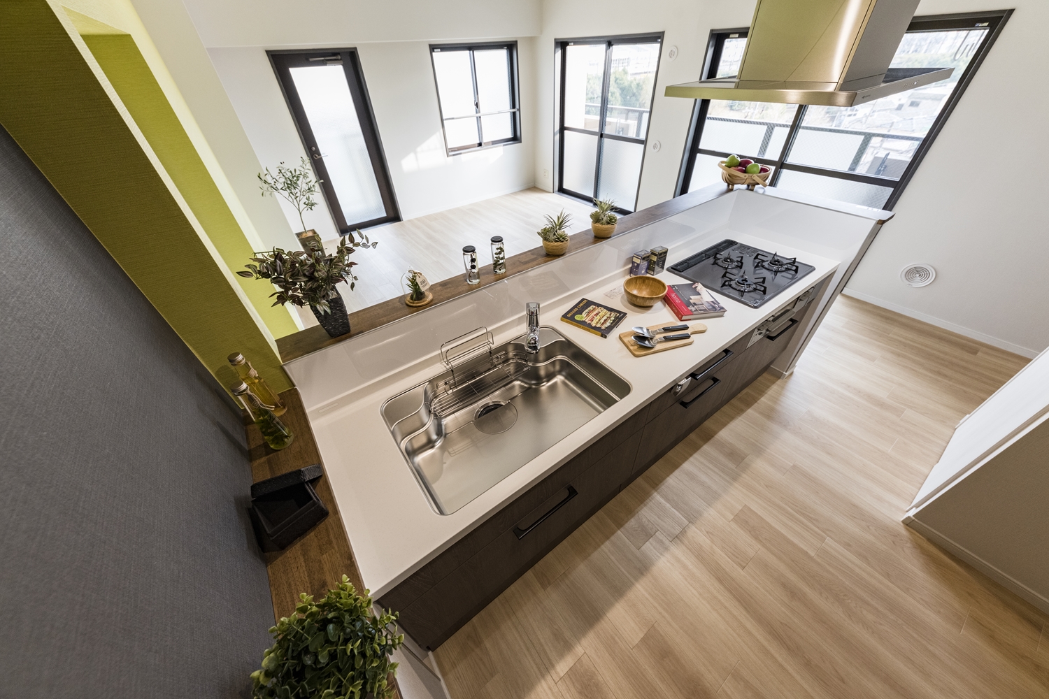 キッチンと住まいが一つのつながりになって暮らしにフィット。優しい風が通り抜ける心地よい場所。