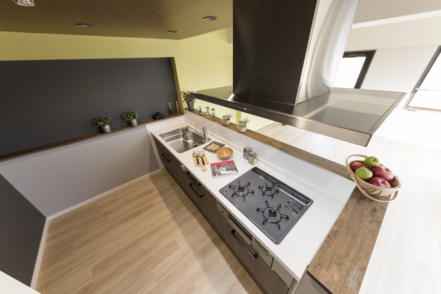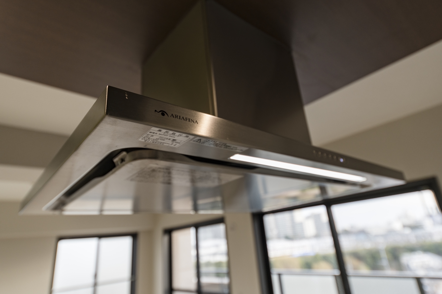インテリアに溶け込むスリムなデザインのレンジフードで、視界もスッキリ♪
