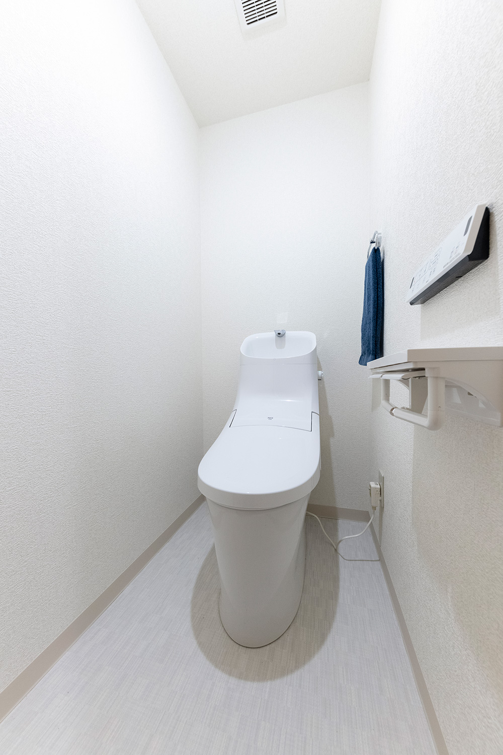 上階からの水漏れ事故を経験されて給排水管の老朽化を心配されていました。水廻りの設備機器交換をする時に給水管、給湯管を取り換えるのが最も効率的ということから、今回、床下を通っている給水管と給湯管を新しく取り換え、排水管の状態も確認しました。給湯器、トイレ、洗面化粧台、ユニットバス交換工事。