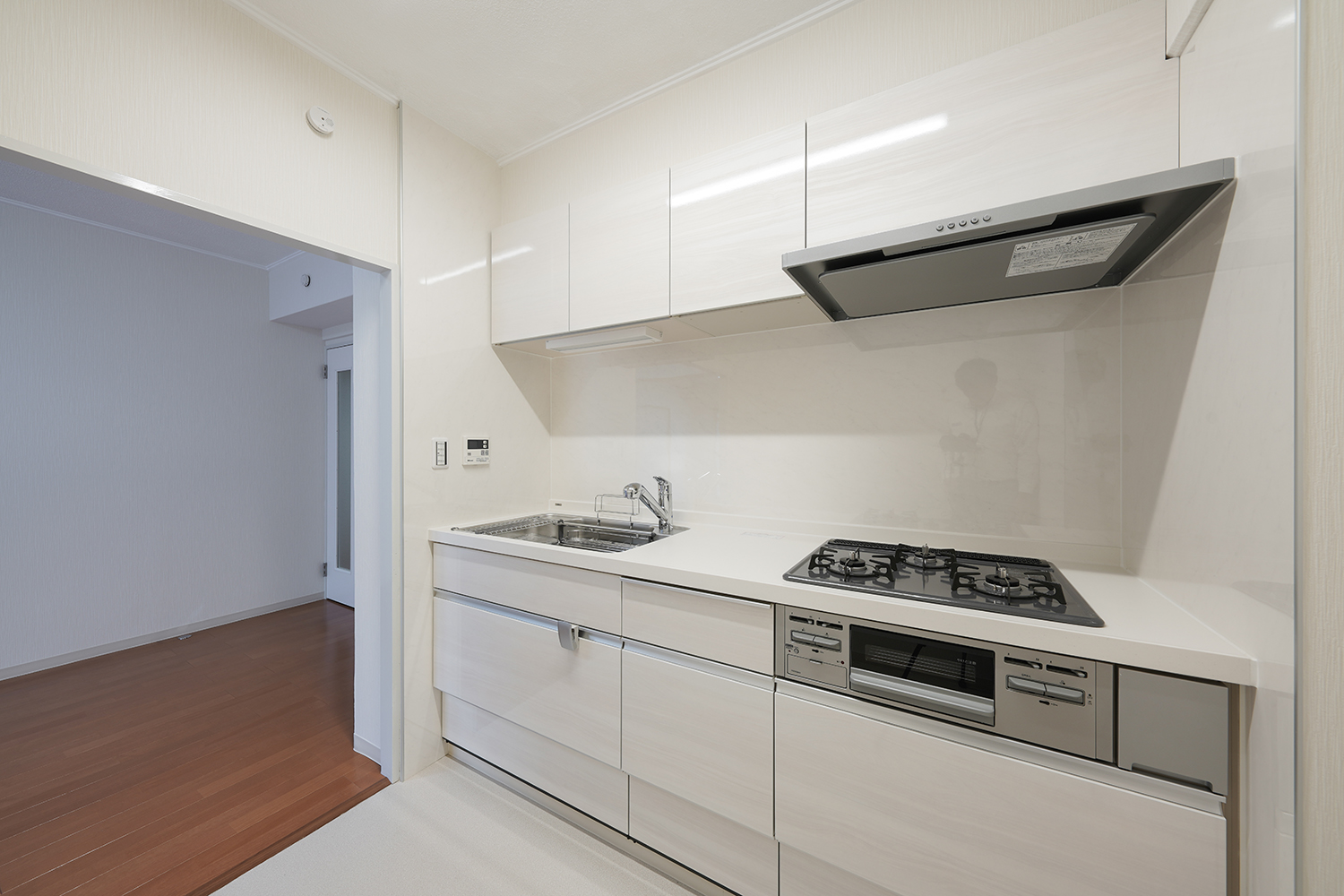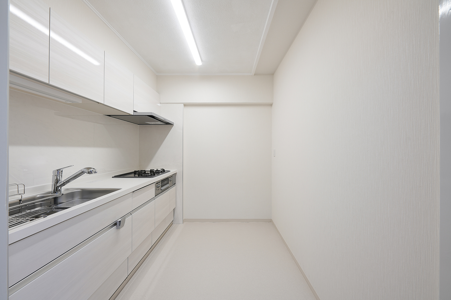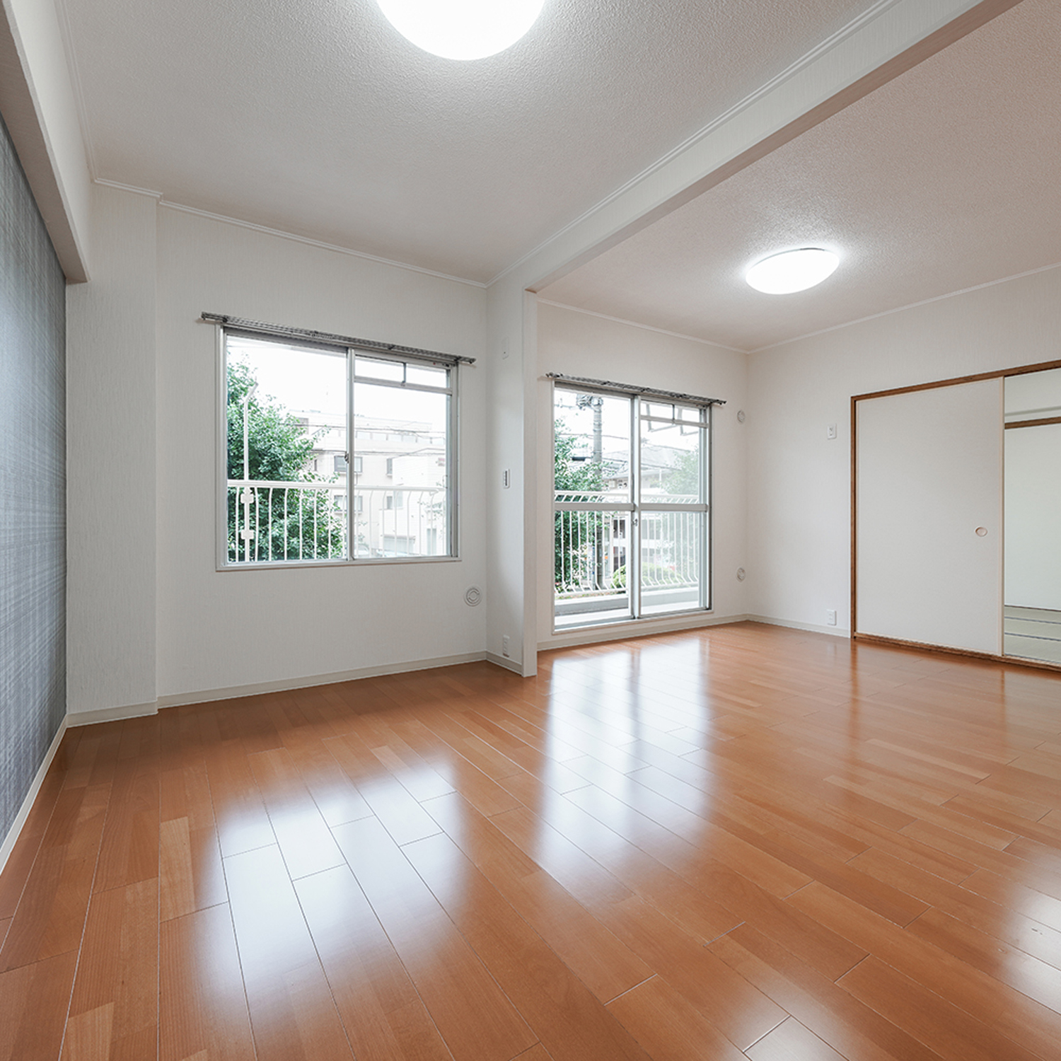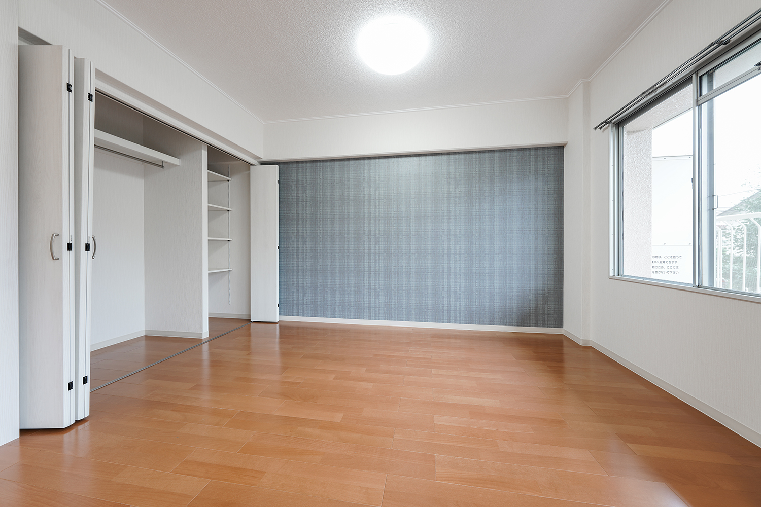 マンション一室のリフォーム工事のご紹介です。お部屋全室、天井・壁のクロスの貼り替え、床材の上張り、照明や建具の交換を行いました。ナチュラルな色の木目が印象的で温かな空間になりました。