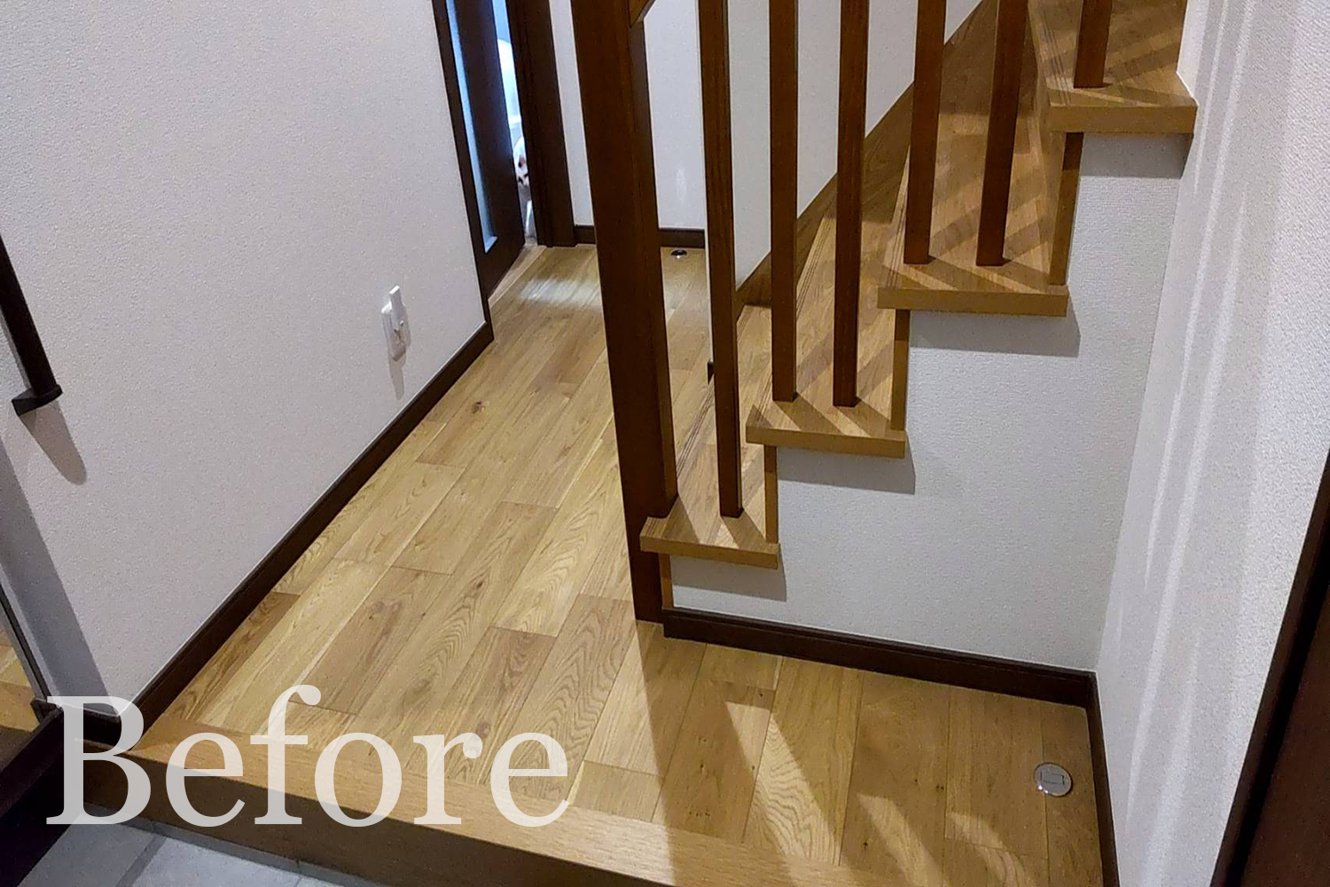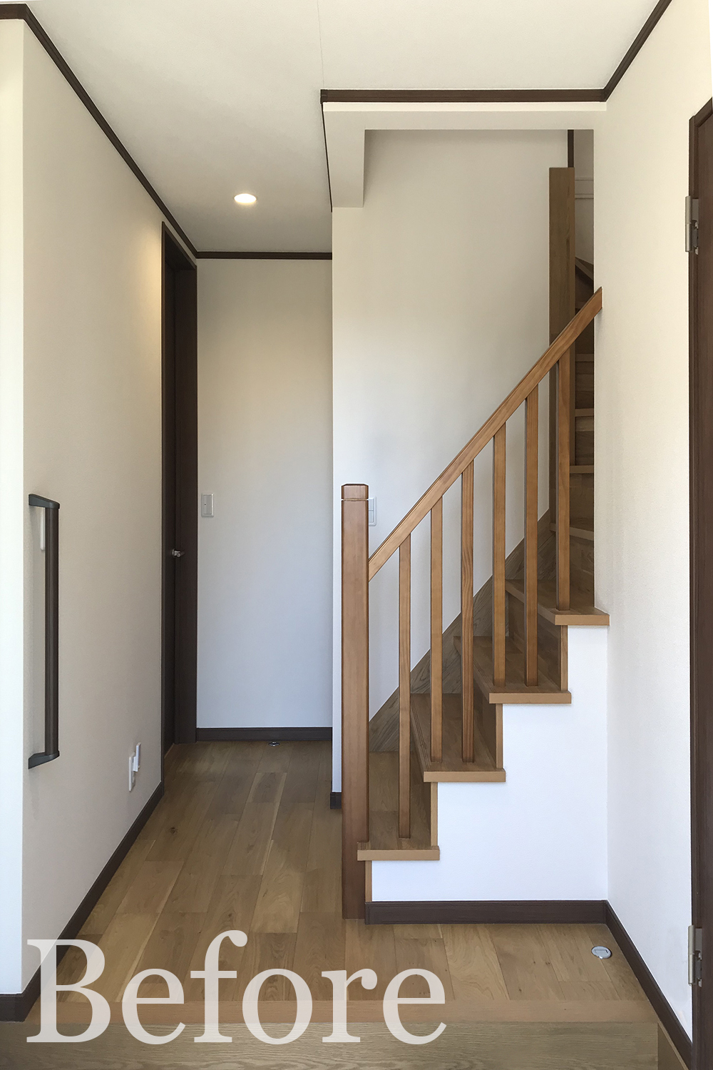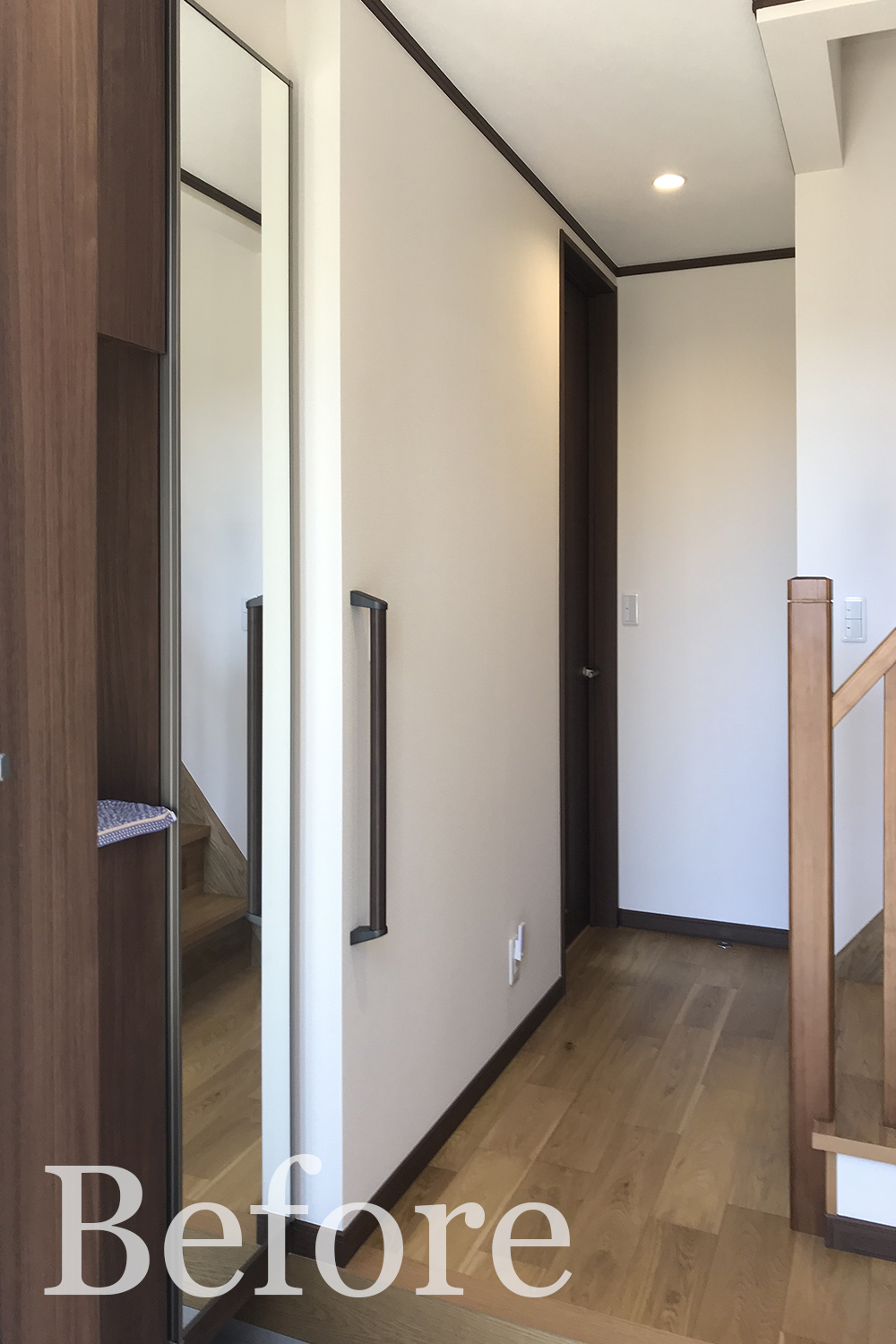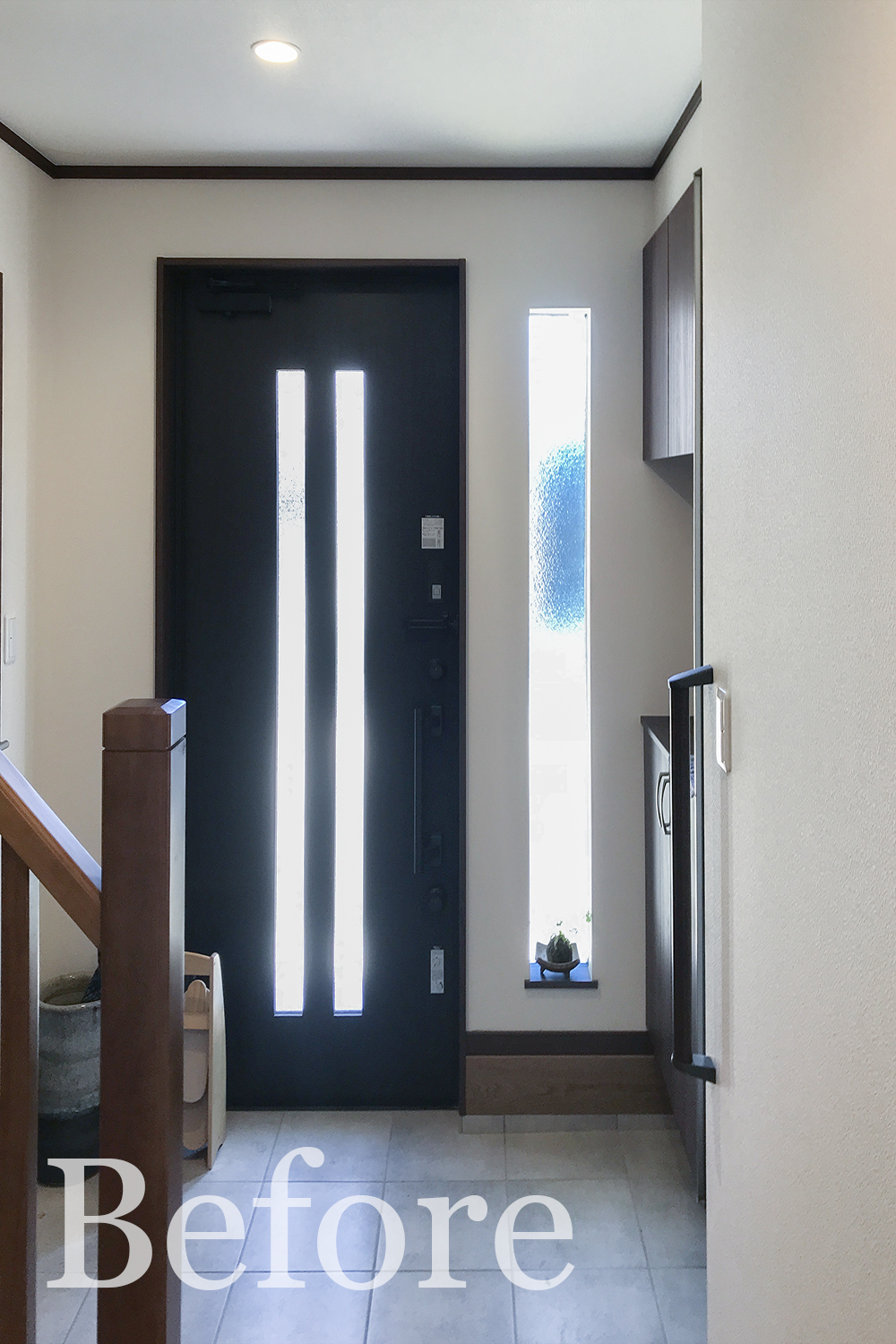 大切なペットが不意に外へ飛び出して逃げてしまう事考えて 玄関にフルオーダーのスライド格子ドアを設置しました。